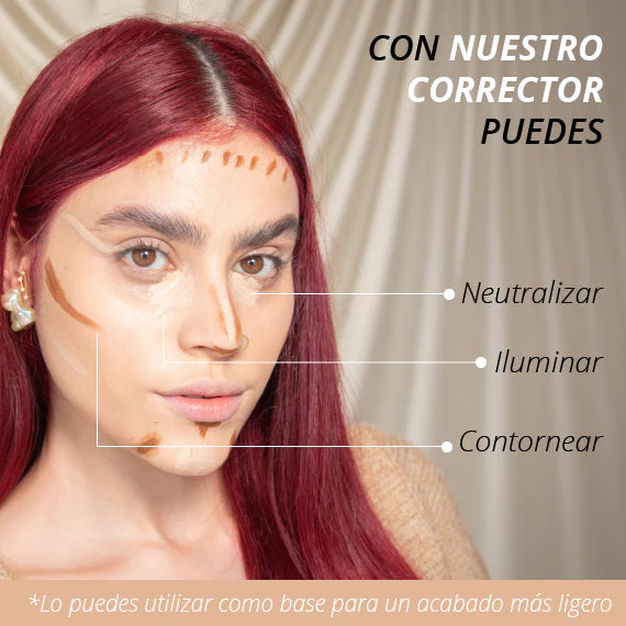 Ideal para disimular ojeras, manchas o rojeces, mientras ilumina el rostro y aporta un acabado natural de larga duración.