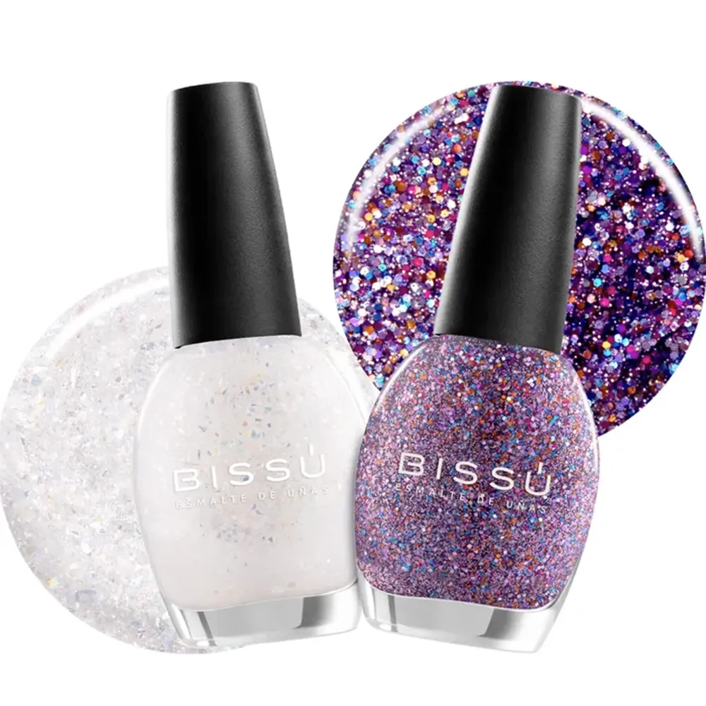 Sus glitters de formas únicas y acabado brillosísimo añaden un toque moderno y sofisticado, mientras que su fórmula libre de tolueno y formaldehído cuida tus uñas sin comprometer el estilo. Además, se aplican y se retiran con facilidad, sin necesidad de lámpara UV.