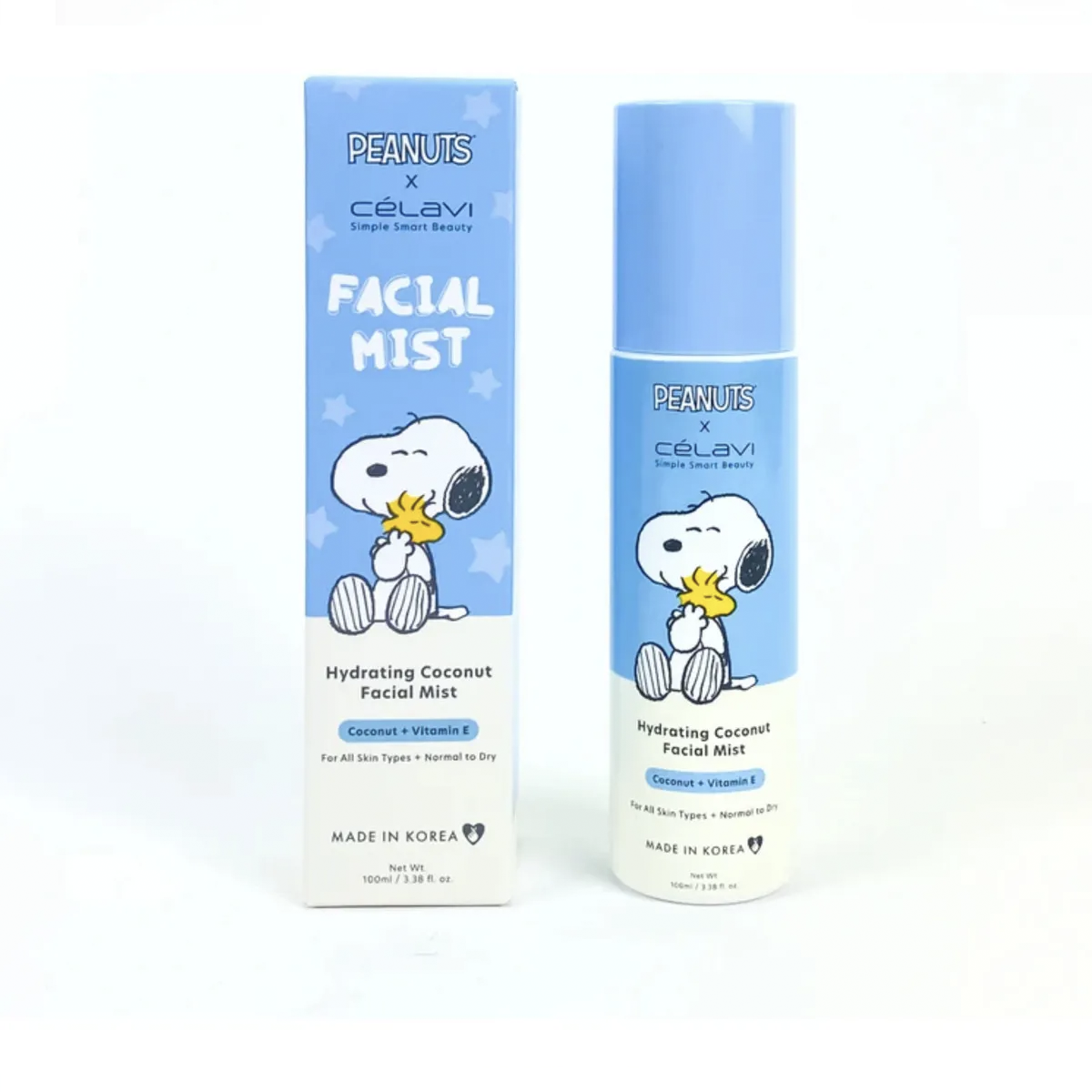 ¡Refresca tu rostro al instante! Bruma facial hidratante de Coco y Vitamina E con el tierno diseño de Snoopy.