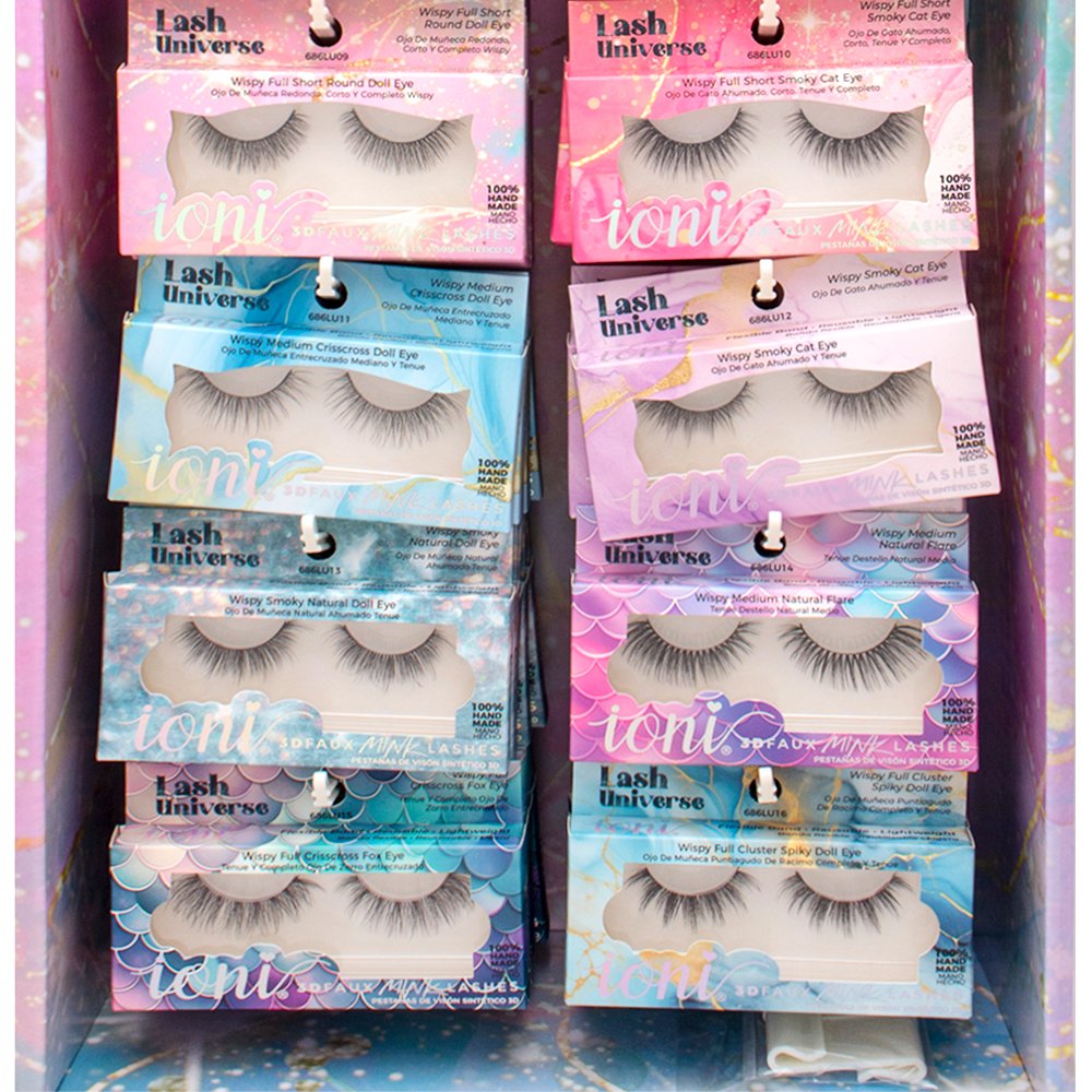 Set de pestañas postizas Ioni Lash Universe con 96 piezas, ideal para crear múltiples estilos y realzar tu mirada en cualquier ocasión.