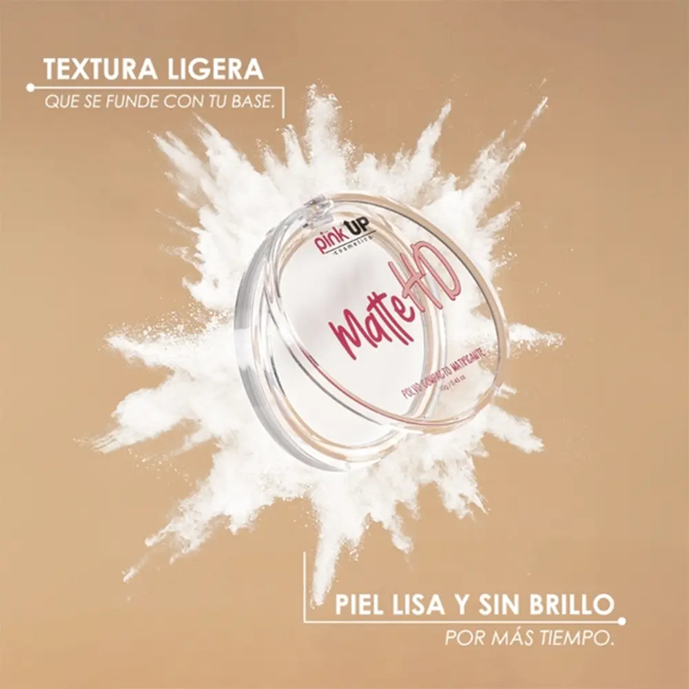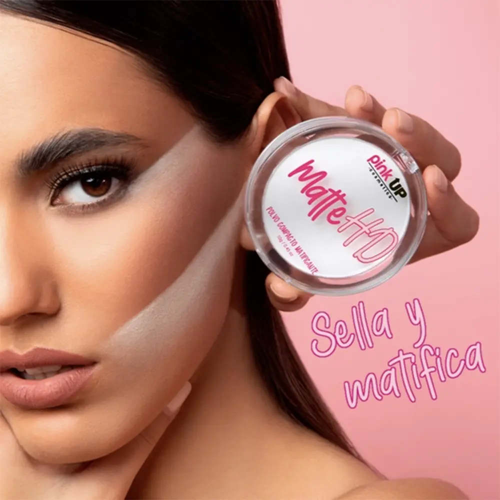 Matte HD de Pink Up es un polvo compacto traslúcido diseñado para sellar el maquillaje y controlar el brillo, dejando un acabado mate impecable por largas horas.