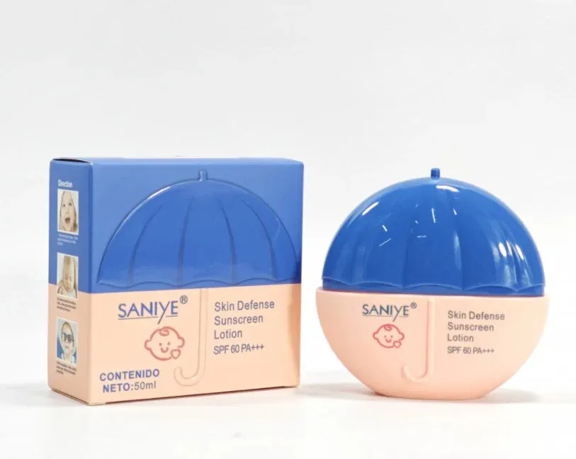Protector solar para niños Saniye SPF 60 PA+++ diseñado para proteger la piel durante la exposición al sol.