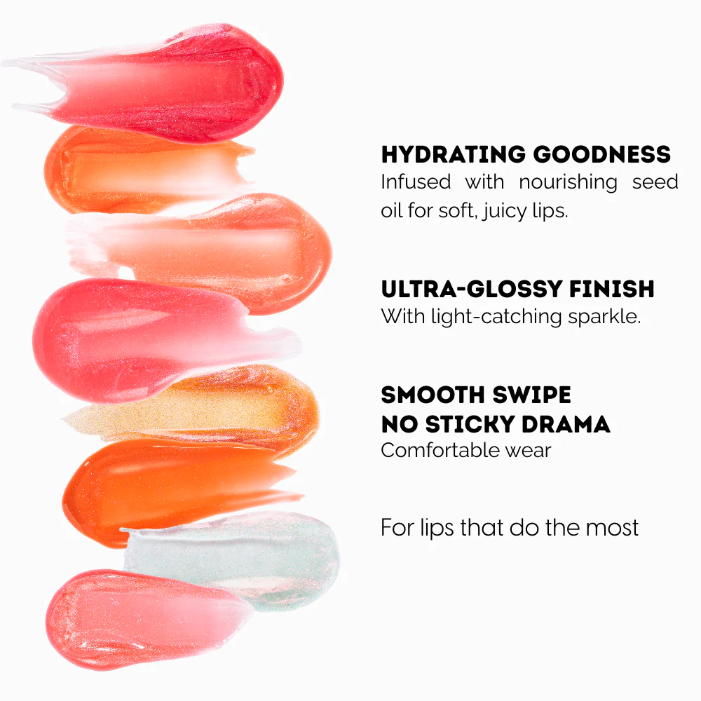 Gloss labial ultra brillante con glitter, hidratante y no pegajoso. Aporta volumen, confort y un glow espectacular.