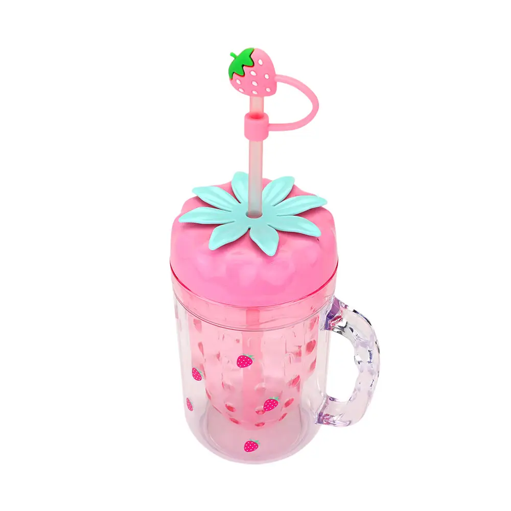 Su tapa en forma de fresa y su diseño tipo Mason Jar lo convierten en un accesorio cute y práctico, ideal para bebidas frías.